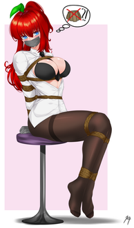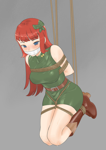 Beautiful, love the rope work, gag and her bangs and color matches the ropes