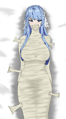 thank you very much man. I love it so much. At some point in the show she wears bandages around her whole body so i think a mummification is a great way to restrain her.