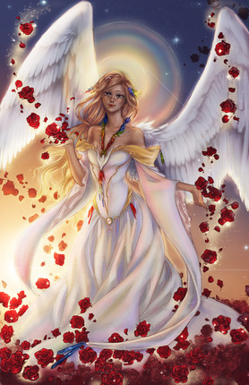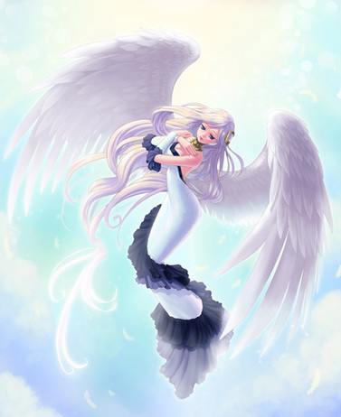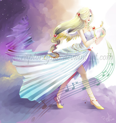 This is the most fabulous piece of art I've received in quite some time! I adore it - you got her perfect, and I absolutely love it! I love how delicate she looks - her face is captivating, and the tiny roses all around her really adds to her pure and innocence. The harp is gorgeous too - you chose a wonderful style of one to do! Her eyes still have to be my favorite part of it - it's just... they draw me in. ♥