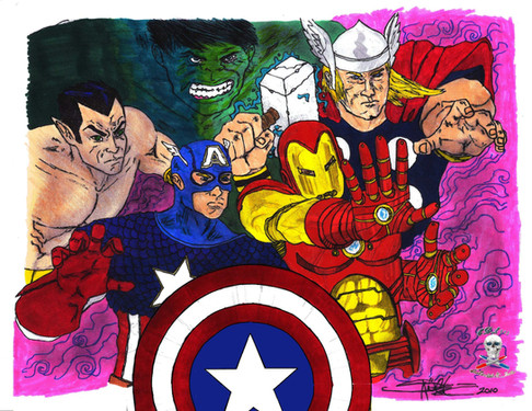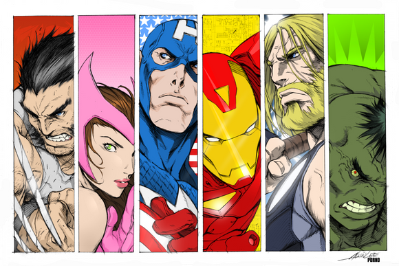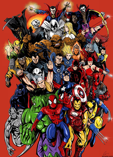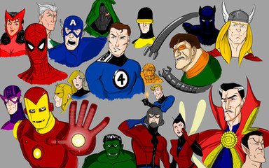 Here is a group of Marvels greatest heroesDr Strange, Captain America , Iron-Man, Spider-Man, the Hulk, The Thing, Thor, Black Panther, Wolverine and the Silver Surfer.