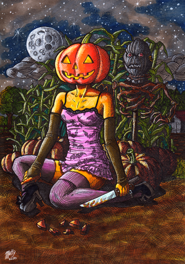 #horror #monster #halloween #traditionalart #ink #creature #creepy #pumpkin #pumpkinhead