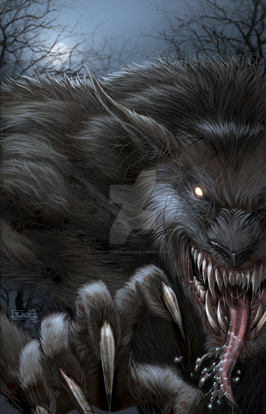 Amazing artwork. I love the look of the fur, the moon in background, and the drool dripping from his muzzle