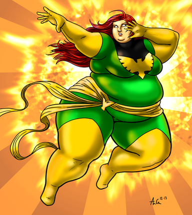 A pudgier and fiery Phoenix entity.I take no credit for the character and for those that don't like this art or like the shape of this type of art, you know where to go and what to kiss