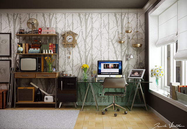 3ds Max / Vray / CS5This is the part of workplace, which is my favorite and I want to share with you, and the rest of the house is completely crazy !