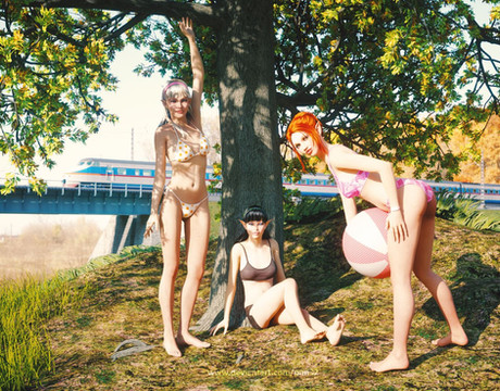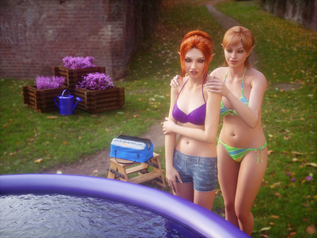 #ball #bikini #couple #cute #elf #exterior #fun #pointyears #pool #rooftop #summer #water #barefoot