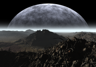 After that, I took the crystals into Vue Infinite and made some textures for them. The bottom of each crystal is a texture similar to the earth that they're coming out of and becomes a transparent crystal about 1/8 the way up the crystal. The crystal material itself is pretty basic -- just a high refraction index transparent material with some refraction blurring and sharp highlights.