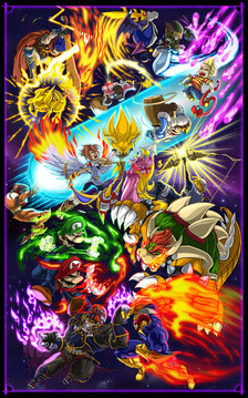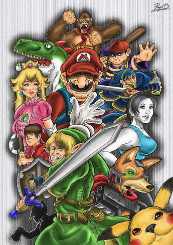 a website header commission i did.it's for a video game site and it involves a bunch of nintendo characters playing wii (if you didn't notice).