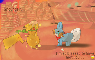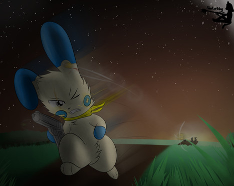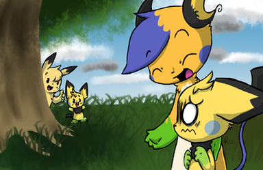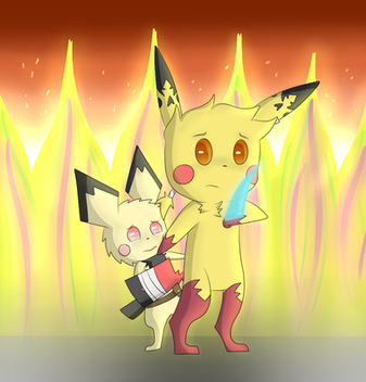 After arriving to the burning city, while the chus disperse Jun went around most likely leaving her mates and kids in search of anyone who was caught under some of the rubble. Muffled cries came from a direction to meet her ears and thus she followed to the remains of a building. Looking in and under the rubble the Glowchu came across a few residents who were in the rubble. Lending a hand Jun offered her help to the stranded folks and tried her best to get them out.