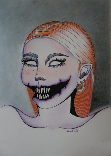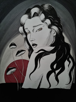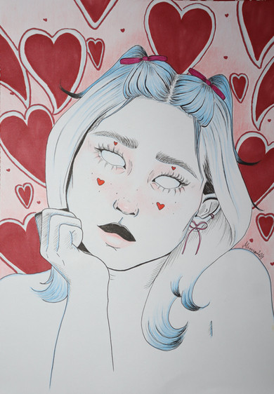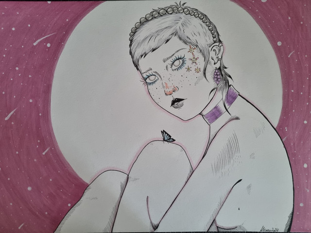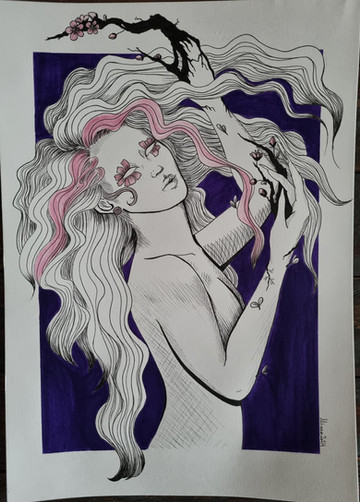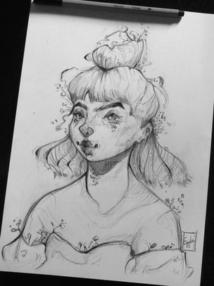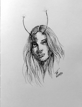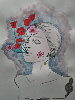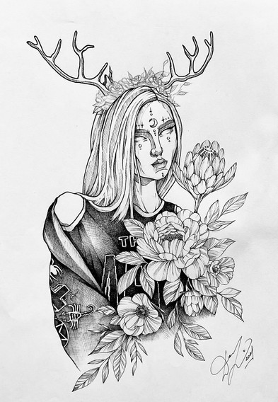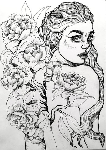 #flowers #pearls #shorthairedgirl #watercolorbrush #hornedgirl #finelinerdrawing #finelinerart #finelinerpens