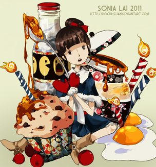 am astounded every time by the creativity and originality of your composition. are those candles on her head? loving the inky feel that youve carried over from a few of your others. also, your anatomy has improved so much - talking specifically about the shoulder. depth on the sleeve is also very good. great stuff