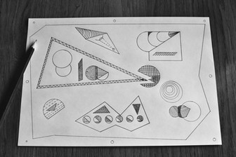 The task was to show different collections of numbers with geometrical, abstract forms, from left: total numbers, fractions, prime numbers, complex numbers, even, odd, numbers of opposite sign, numbers of the same sign, real numbers, unreal numbers (I hope you will understand all of mentioned, I did my besttechnique: marker