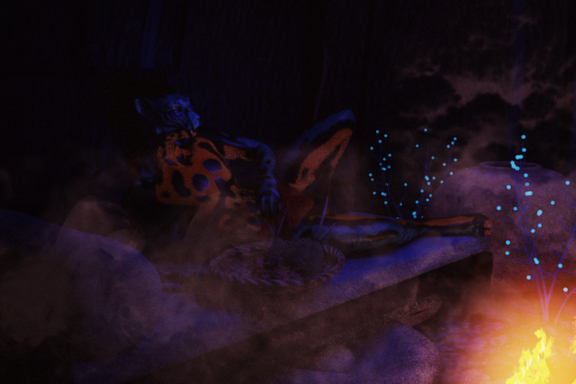 #anthro #bridge #catgirl #daz3d #fantasy #fantasyart #fantasycharacter #forest #iray #myranor #pawfeet #paws #shaman #tail #daz3dstudio #daz3dfemale #tailgirl #fire #cgirender #g8female
