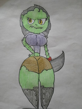 #fanart #originalcharacter #bigboobs #bigbreast #blondehair #leotard #oc #redeyes #sexygirl #shortshorts #orcfemale #braidsgirl #greenskinnedgirl #thickthighs #hugethighs #thongleotard
