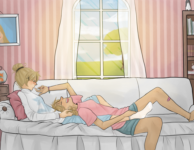 Aww kuuuuuuuuuuuuuuuute. He looks like he wants to tell her to get off but he can't make himself ^^'