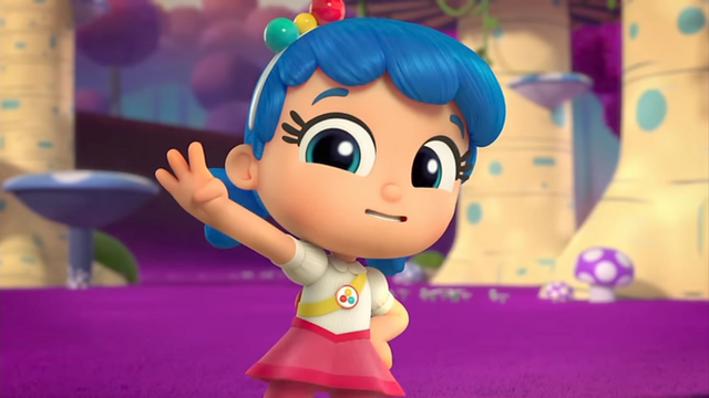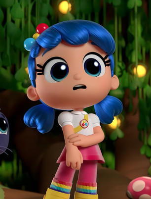 Imagen obtenida de una captura de pantalla de True, quien es la protagonista de la serie True and the Rainbow Kingdom.Esta imagen está con resolución aumentada y buena calidad.
