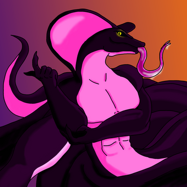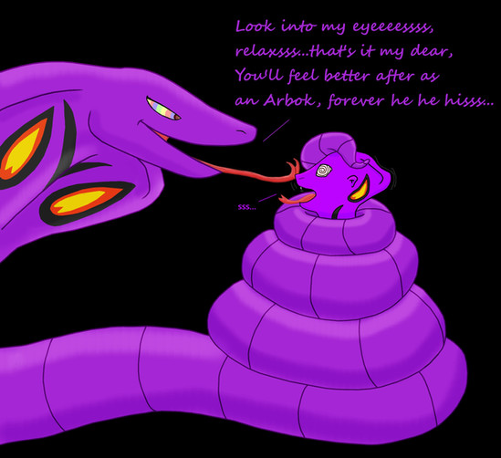 Aww, Kavi when did you become such a cute and colorful Python?So cute even the spotlight is shining on you as clover sees you in a pretty animal transformationYes one of his animal transformation is indeed a Indian rock Python. Yet in reality they are not purple. Yet it is one of his favorite transformations since he can be up to 15-16ft in length when he is in snake formation which also includes his king cobra transformation. He tends to transform into a python to comfort clover,cuddle with her squeeze his enemies to death who threaten both of them and defend clover.