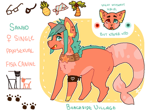 finally got around to making a proper ref sheet for my beautiful koi girl ;v;her name is Hanako (θ―ε) which means "flower child"!