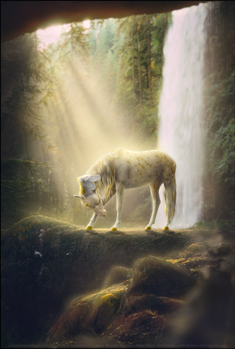 Beautiful. The lighting effect draws the eye to the horse and is stunning. Gorgeous setting as well. Extraordinary work.