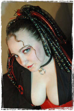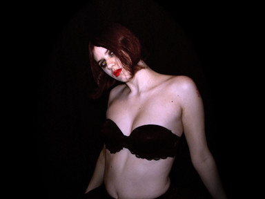 I have only had one session with this model and nearly every image from that session expresses some sort of contradiction or conveys a metaphor of some type. I find this image particularly intriguing because her pose and white skin connotes religious purity while her clothing is an affront to conventional Christian attitudes.