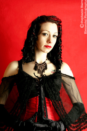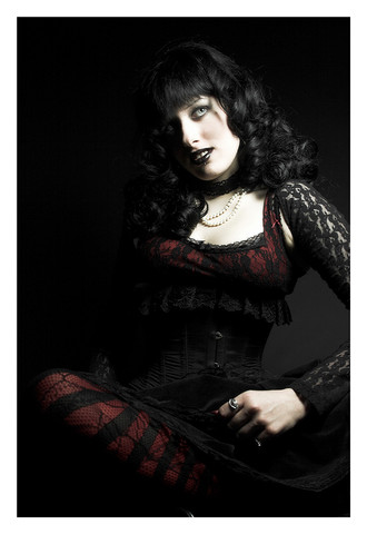 i have that same corset, only in black! rawr. i love the way half of her face is perfectly covered in shadow.