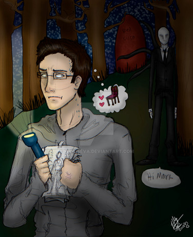 Well... this was a point comission for =SgtShadowWalkerI know you wanted me to draw some ''Jumpsacare'' But, I'm gonna be honest, it was difficult to come up with something ._. so Insted I drew your OC in Slender. Hope that works to