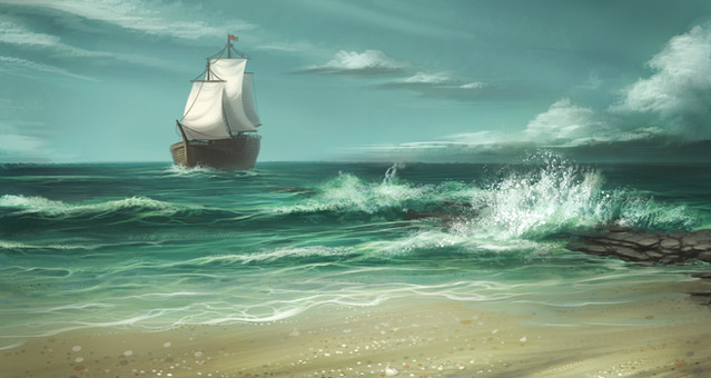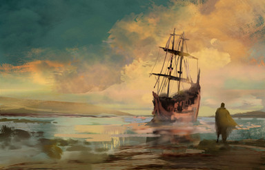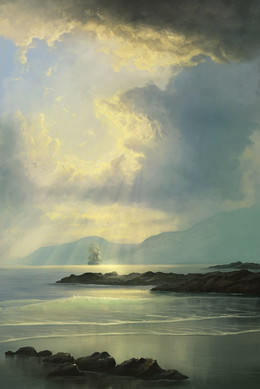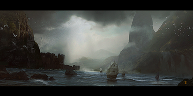 I like the texturing (especially the rock on the right) and the haziness to the image.
