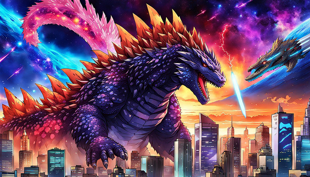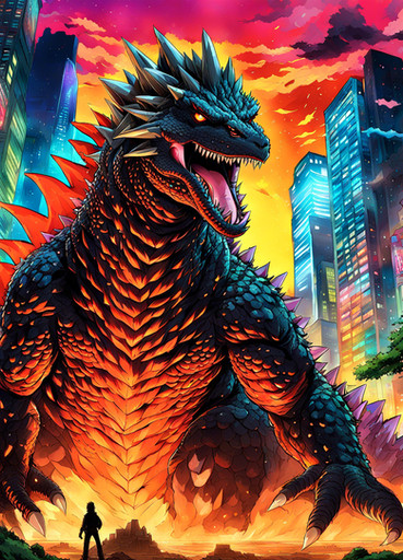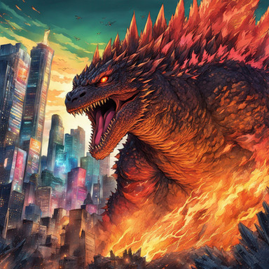 #fanart #godzilla #ai #dreamup #digitalart #characterdesign #wallpaper #cityscape #videogamefanart #digitalpainting #poster #neon #ai_art