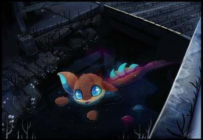 thanks for your feedback! though you see it right, it was supposed to have a gooey look not to show she's in gooey water, more that the water she's in is dirty and not nice (which could also be read on her face). It's overly exaggerated to suit her expression and the mood, well at least that was my intention!