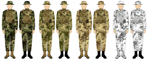 The point is, I didn't achieve it. I have created perspective disruptive base pattern but when I add multicam-like blotches & splotches the forced perspective disappear. I thing that because the top blot.&splot. layer is too dense and cover the disruptive underlayer. But when it is too sparse it lost mimetic ability. Till now i din't figure how to fuse the disruption and the mimetic parts together.