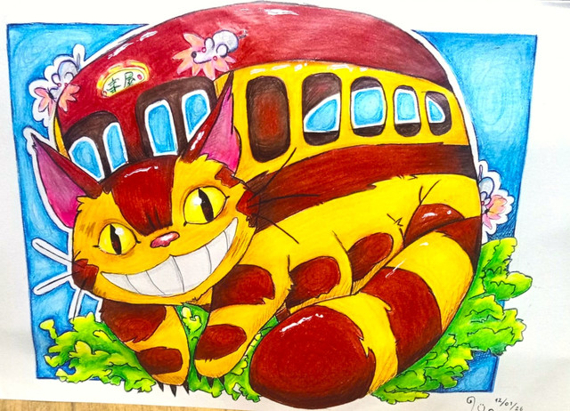 And here is the next cat and of course it is Catbus from the anime My neighbor totoroβ¨οΈI wanted to draw it for a long time and decided that it would be just right for this challenge:3