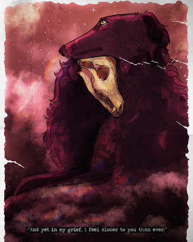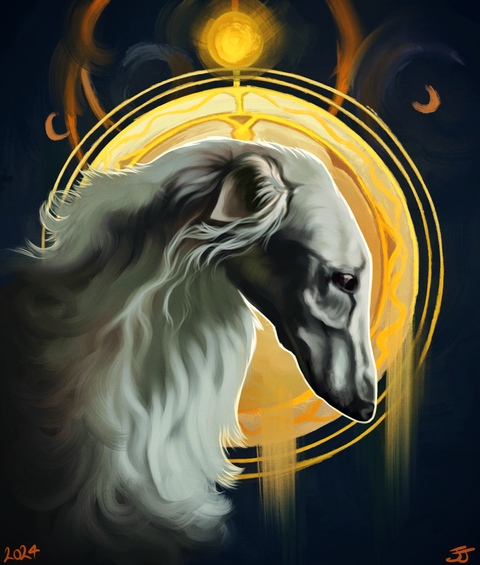 A little introduction to the character~This is Hope, she is a familiar dog who was created together with her sister (name is still a secret🤫) by a magician who unfortunately had an incurable disease that he tried to cure on his own, but the disease took its toll. Hope was a very faithful dog who was by her master's side until the end. It was very difficult for her to survive the death of her master, she did not let anyone near her and became very aggressive. Over time, the aggression turned into apathy, Hope stopped eating and drinking, her sister tried to help her but it was useless, she could not stand it and realized that she had to call someone for help. But who will come to the aid of two familiar dogs without a master? You will find out later😉