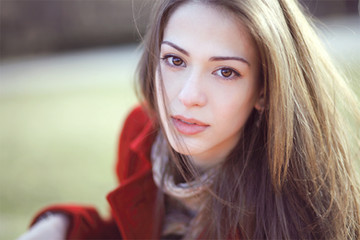 her eyes look like... i don't know... just as red as her coat.