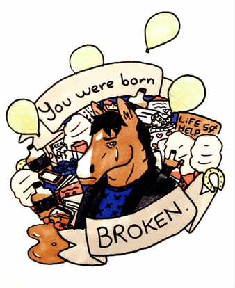 I love Bojack Horseman this show has had like, a really really profound affect on me no joke. And that line, where his mother says that she's sorry, and that he never had a chance, that he was born broken- completely shattered me, like, what an intense and important moment.anyway you can buy this design on Society6 and Redbubble.