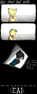 Aww, poor thing. It's making my motherly instincts come out. I need to give that fictional boy a hug.