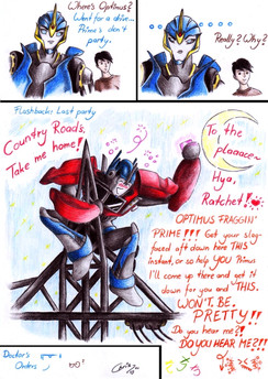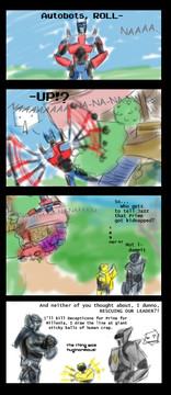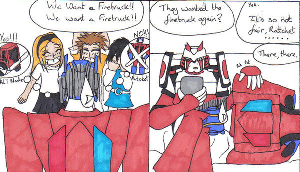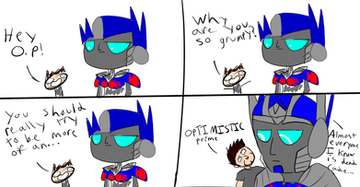 So cute! Love it! And the comment at the end (I'm guessing Ratchet or Arcee). Yes, they're bros 5ever!