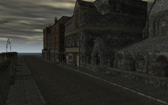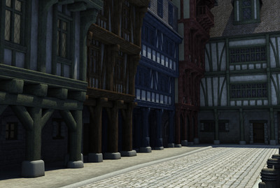 The building closest too you (on the left) and most of it's props in front (minus the sign and street lights/parking metters) was designed by my classmate Courtney. The other buildings, street, curb, street lights and props were done by me.