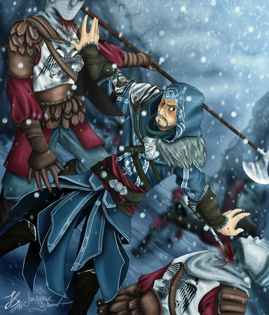 I don't think it needs a warning. There is not too much blood, just dynamic fight. I asked this question about one of my deviation too (lol, it is even called in the same way - "Troubles", but with Altair) It's funny how people can think in similar way