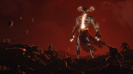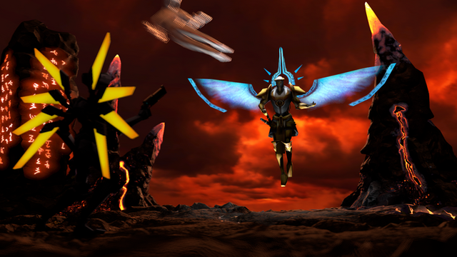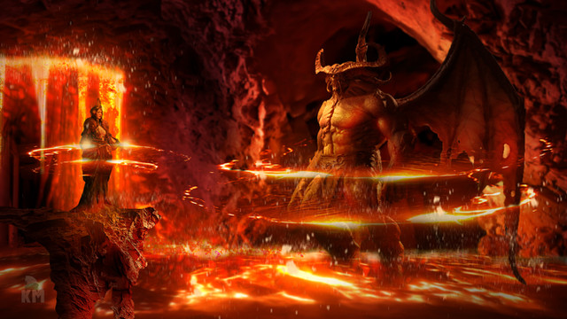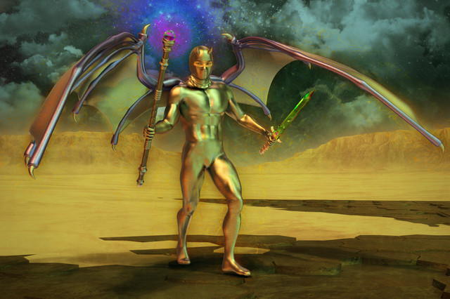 Figures and rock in DAZ Studio. Background in Vue. Ron's Sparks for debris.