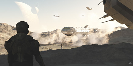 #desert #mojoworld #moon #planet #scifi #spaceship #surrealism #wallpaper #fractallandscape