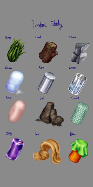 I really enjoy looking at other peoples material studies and i felt like i needed to straighten up my own material knowledge.It was fun to do!