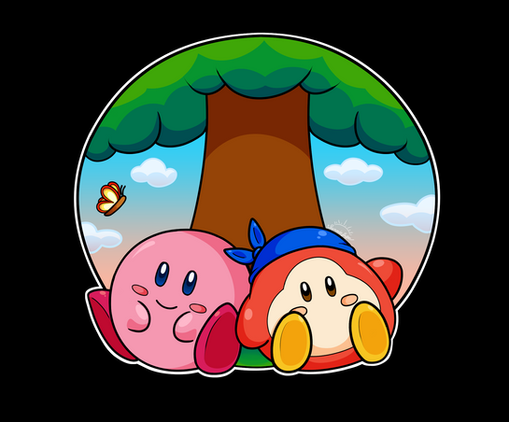 Aawww~ they both look sooooooo adorable here. The little butterfly on Kirby is a cute touch too ^^