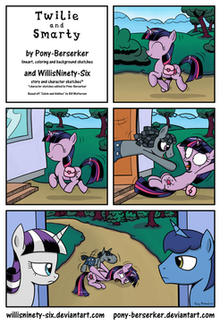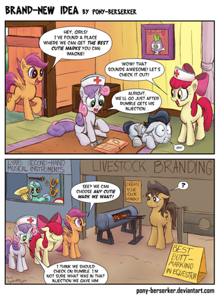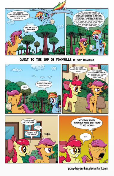 So, the pairing of Sweetie Belle and Button Mash is based literally on a single frame in 'Hearts And Hooves' - then one popular fan-artist used this pairing in his comic, and boom - a widely accepted fanon. And that's exactly why I made this comic - to do the opposite just for laughs - I'm not bound by any fan-theories. I might've been a bit harsh here for Button, but it didn't help I just don't like him as a character. I've had this comic in mind for a long, long time and recent PMV featuring this two kinda accelerated the creation of this comic.Remember, Sweetie Belle considered him 'too young'* I could say she judged him by her own standards