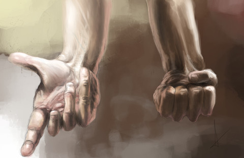 Wow! This is great in colours and values and overall shapes! The only thing I see that you could change is that first two fingers are too thick.