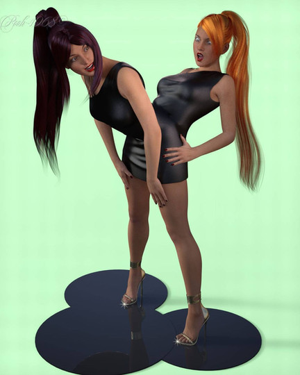 There's a reason their respective tops aren't cut lower, let's just say ^^. And yes, since I was the one who commissioned the original work, I know what I'm talking about.