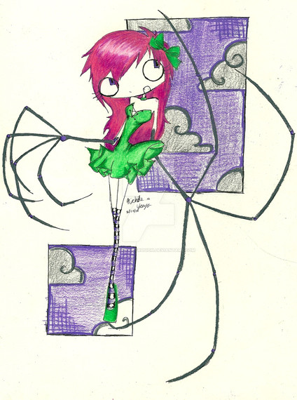 This is a real quick entry because I have alot of things I want to submit in a bit, things I did in sumemr school. This one was the fastest one I could do since it requires little touch-up work compared to the others.The shape of the web was what I first worked on and it slowly developed into the web with the girl on it, since although the web itself looked pretty spiffy I knew it couldn't be just a web in the picture. So she is a bit a plain and generic but still pretty. ~