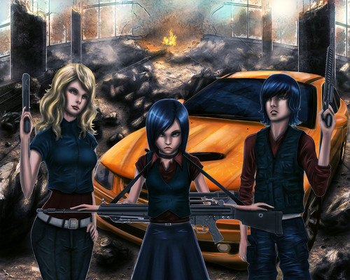In my book, The Pool, Washington D.C is completely destroyed by a bomb that destroys the molecular structure of anything alive , and serial killer Simon Weld set it off without warning , killing every form of federal government we have. This causes state government to collapse and the citizens begin to form factions which is the cause of the second civil war. Smurphette and her crew are caught in the middle of it and after building up arms and soldiers, they make their first strike at the Arian Nation and their second strike at the federal police, a faction made up of all the police officers from every state who abused their power early. This pic shows the first strike against the cops. Hope ya like it, it's my first time building an explosion from brushes I found here on DA and on the internet.Enjoy!