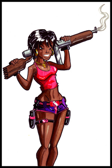 I was learning how to do textures and merge them with cell shading and I decided to return to one of the characters that kept me from giving up on drawing. I knoe the brick wall is corny but take a close look at her outfit and her gun, that is what I am most proud of.