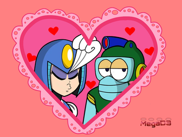 I really like how this looks. The style and colouring remind me of old 90s anime and this is amazing. And Bubbleman's expression is so adorable, this blush makes me very happy for some reason.