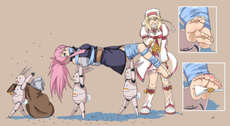 Several dimensions. Several sham swimsuit contests. Several Blancs, lured into a trap designated for her and her alone. Tight, thorough bondage complete with cruelly layered gags and Anti-Crystal collars clamped around their necks saw to their helplessness. For what purpose? Only their captor knows...
