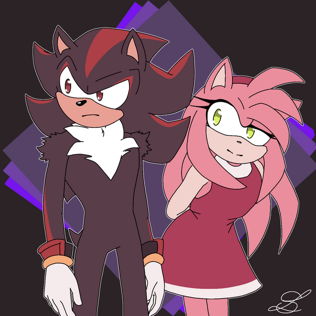 Here have some Shadamy, I won’t never stop shipping them together! And if you’re wondering why Amy looks different that’s cuz this is a au where Amy hates sonic and joined team Dark ).